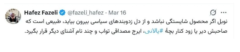 حساب ایکس حافظ فاضلی- ۲۵ اسفند۱۴۰۴