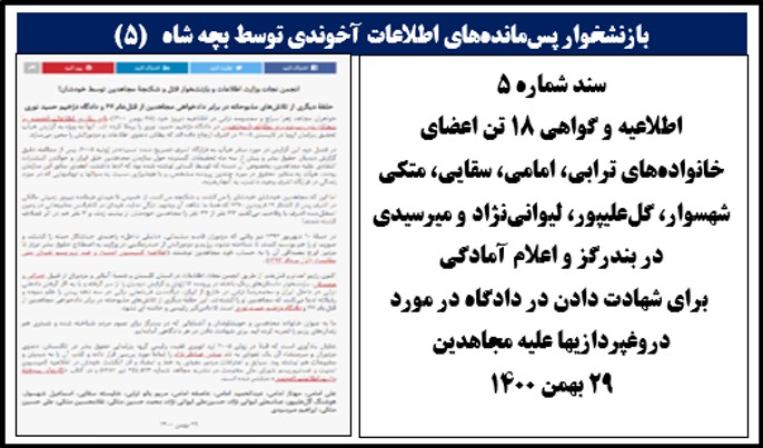 سند شماره ۵ - اطلاعیه و گواهی ۱۸تن اعضای خانواده‌ها در بندرگز و اعلام آمادگی