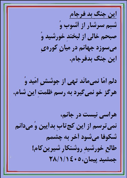 جمشید پیمان: این جنگ بد فرجام