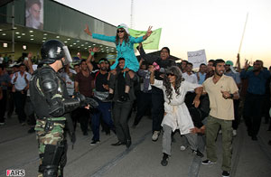 در این مانور وحشت، که تصاویر آن توسط خبرگزاری مهر، منتشر شده، بخشی از مزدوران رژیم به نحو مسخره یی، نقش قیام آفرینان و تظاهرکنندگان را به اجرا گذاشتند. و پلاکاردهایی به دست گرفته بودند که روی آن جملات مسخره یی نوشته شده بود. پاسدار رادان جانشین سرکرده نیروی انتظامی رژیم و آخوند اژه ای دادستان کل و سخنگوی قوه قضاییه رژیم که هر دو در زمره هشت خبیث جنایتکار در لیست سیاه نقض حقوق بشر، قرار گرفته اند، در این مانور وحشت طی سخنانی به مزدوران رژیم دلداری و روحیه دادند.