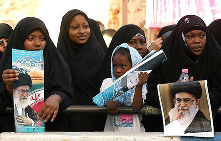 تصاویر و عکس های منتشر شده در سایت های حکومتی نشان می دهد که تعداد زیادی از شرکت کنندگان در مراسم استقبال از خامنه ای، مهاجران آفریقایی و عرب و به خصوص عراقی های ساکن قم بودند.