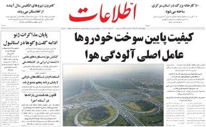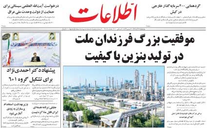 این روزنامه، در دو روز پیاپی تیتر اولش را به وضعیت سوخت اختصاص داد. روز 17 آذر، کیفیت پایین سوخت را عامل اصلی آلودگی هوا اعلام می کند، روز بعد (18 آذر)، تولید بنزین با کیفیت را «موفقیت فرزندان ملت» می نامد.