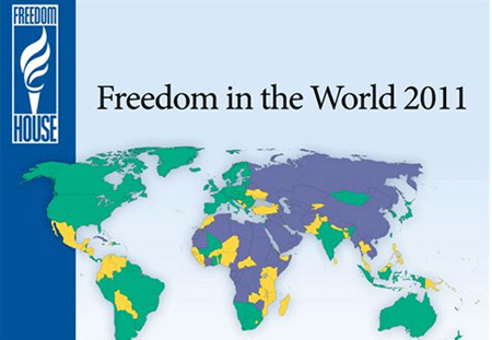 کشورهای غیر آزاد در گزارش فریدم هاوس ۴۷ مورد اعلام شده که ۲۴ درصد کشورهای جهان یا دو میلیارد و ۵۰۰ میلیون نفر را در بر می گیرد.