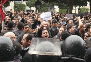 همچنین نیروهای امنیتی با استفاده از زور شرکت کنندگان در یک راهپیمایی که به دعوت اتحادیه عمومی کار از منطقه بطحا راه افتاده بود را متفرق کردند. درگیری ها در شهرهای قبلی، دوز و بنزرت نیز در جریان است که خبرهای رسیده از زخمی شدن شماری از تظاهر کنندگان حکایت دارد.