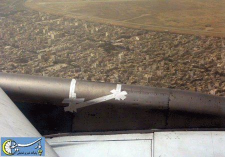 در این تصویر که سایت آینده اقدام به انتشار آن کرده است، تصویر بال شکسته و چسب خورده یک هواپیما که در خطوط هوایی داخلی به کار گرفته شده، نشان داده می شود.