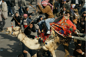 فیلم زیر که امروز صبح توسط خبرگزاری آسوشیتدپرس مخابره شده درگیری های سنگین و تیراندازی و پرتاب کوکتل مولوتف توسط طرفداران مبارک به مخالفان را نشان می دهد.