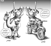 کاریکاتور ـ گفتگوی لباس شخصی موتورسوار با لباس شخصی شترسوار!