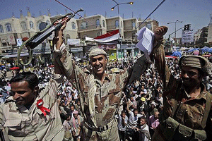 در حالی که معرتضان یمنی روز دوشنبه، در مراسم تشییع کشتهشدگان روز جمعه شرکت داشتند، ژنرال علی محسن، حمایت خود را از مخالفان علی عبدالله صالح اعلام کرد.
