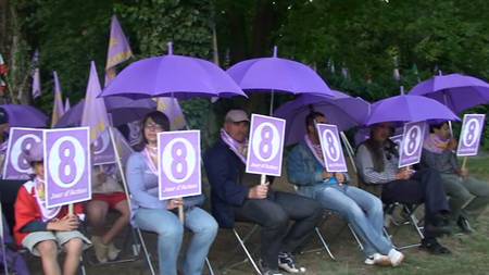 در شامگاه هشنمین روز متحصنین با حلقه زدن و در دست گرفتن تصاویر مجاهد شهید علی اکبر مدد زاده و شمع های روشن بار دیگر با اشرفیان تجدید عهد کرده که تا دست یابی به خواسته های بر حق خود مبنی بر خروج مزدوران نوری مالکی از شهر اشرف و حفاظت کامل ساکنان آن توسط سازمان ملل متحد و مداوای مجروحین از پای ننشینند.حضور مادران سالخورده اشرفیان و کودکان خردسال در جمع متحصنین بیانگر غزم جزم و پیمان استوار آنان در همگامی با اشرفیان غیوربوده,همچنانکه این روزها کمتر کسی است که فریاد ما همه با هم هستیم اشرف بی شکستیم را در میدان ناسیون ژنو نشنیده باشد.