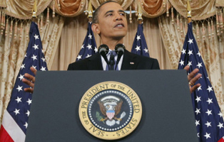 باراک اوباما درسخنرانی خود درباره صلح خاورمیانه و مذاکرات صلح بین اسرائیل و فلسطین اظهارداشت : این مذاکرات باید به نتیجه مشخص که تشکیل دو کشور جداگانه فلسطین و اسرائیل، است منجرشود و کشور مستقل فلسطین می باید شکل بگیرد.