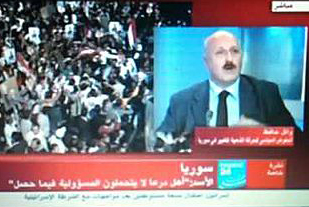 وی که با تلویزیون العربیه 2 تیرماه مصاحبه می کرد گفت: در این جا می خواهم نسبت به نقش رژیم ایران هشدار بدهم، ما ابراز تاسف نمی کنیم بلکه به آنها هشدار می دهیم. اطلاعات رسیده حاکی است که گروههای کمکی ایرانی و لبنانی وابسته به رژیم ایران درصحنه حضور دارند، لذا ما مجدداً به آنها هشدار می دهیم. من از طریق چند رسانه از آنها خواسته بودم که در امور داخلی سوریه دخالت نکنند، این نه تنها خط سرخ است بلکه آنها علیه مردم سوریه اعلام جنگ می کنند و این کار برای آنها قیمت گزافی خواهد داشت. انتظار دارم که نیروهای رژیم ایران از سوریه خارج شوند و اعضای حزب ولایت فقیه از خاک سوریه بروند.آنها می خواهند ما را به جاهلیت بکشانند و این آرزوی ما نیست.