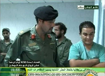 خمیس قذافی،نفرسمت راست، انقلابیون لیبی او را کشته قلمداد کردند. رهبری لیبی این موضوع را رد کرده است .