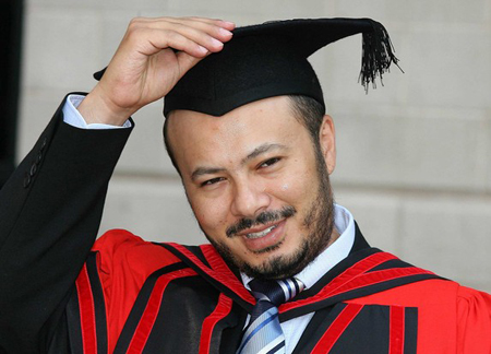 سیف الاسلام قذافی سمت چپ، تحصیلات معماری خود را در وین و لندن کرده است. وی تحت به عنوان جنایتکار جنگی تحت تعقیب دادگاه بین المللی لاهه میباشد