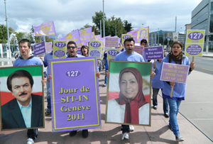 حامیان اشرف که علاوه بر هم میهنان, در میان آنها از مردم شریف اروپایی و آسیایی هم حضورداشتند واز رده های مختلف سنی بودند, در طی روز با وجود هوای سرد و بارانی به طور خستگی ناپذیر و با شور واشتیاق بر خواسته های خود مبنی بر حفاظت اشرفیان و حقوق پناهندگی آنها تآکید کردند و از جمله شعار میدادند , حق پناهندگی حق تمام اشرف, و از کمیسیاریای عالی پناهندگان خواستند که طبق کنوانسیون چهارم ژنو حق مجاهدین اشرف را به رسمیت بشناسد و تاکید داشتند که تا دستیابی به حقوق اشرفیان از تحصن و اعتراض خود دست برنمیدارند.