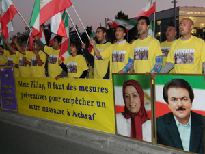 حامیان در شعارها و راهپیمایی خود یکصدا خواستار اعزام تیم مانیتورینک به اشرف شدند, تا از وقوع جنایتی دیگر توسط مالکی بر علیه ساکنن اشرف جلوگیری شود.
