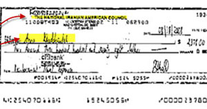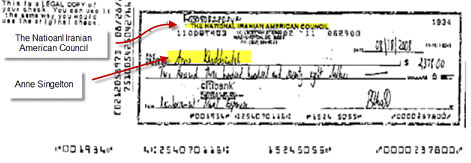 این فتوکپی چک پرداختی پول توسط تریتا پارسی به آن سینگلتون است.