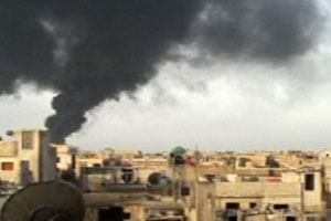 تظاهرات در حالی صورت میگیرد که امروز علاوه بر موشک باران حمص و ناحیه باباعمرو، نظامیان سرکوبگر شهر حما را نیز گلوله باران کردند. در جریان حملات امروز دست کم 61 تن از جمله 7 کودک به دست دژخیمان اسد جان باختند. جانیان رژیم اسد، در یک جنایت هولناک دیگر، افراد یک خانواده را در حومه حما به خط کردند و 13 تن از آنان را به رگبار بستند.