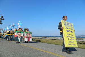 متحصنین همچنین ساعت 14 تا 16 در مقابل مقر کمیساریای عالی حقوق بشر با درحمایت ازمجاهدان خلق در اشرف و لیبرتی تظاهرات کرده و خواستار مداخله این کمیساریا و خانم پیلای برای تضمین امنیت، بهداشت و سلامت اشرفیان شدند. و از کمیسر عالی خواستند که شرایط غیرانسانی و فاقد حداقلهای زندگی کمپ لیبرتی را محکوم کند. و رسماً از دولت عراق بخواهد که به سیاست زندانسازی و فشار بر مجاهدان اشرف خاتمه دهد .و نیروهای عراقی را از داخل کمپ لیبرتی خارج کند.
