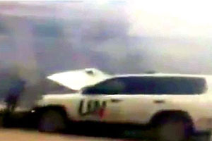 ناظران آتش بس سازمان ملل در سوریه روز سه شنبه در محله خان شیخون شهر ادلیب در محاصره آتش و درگیری های نظامی قرار گرفتند.