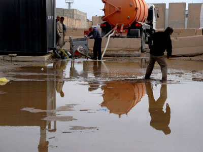 در عین حال دولت عراق برای اعمال فشار بر ساکنان، هم از انتقال مخزنهای فاضلاب از اشرف و هم از انتقال ماشینآلات و وسایل ضروری برای تعمیر مخزنهای پوسیده جلوگیری میکند و هم به تعمیرکاران حرفه یی اجازه ورود به لیبرتی را نمیدهد. در نتیجه ساکنان مجبورند با وسایل اولیه به تعمیر این مخازن بپردازند که البته، پس از چند روز دوباره نشتی مخازن شروع میشود.
