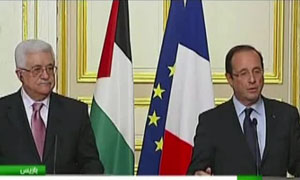 آقای اولاند نیز حمایت خود را از تلاشهای فلسطینیها برای بهرسمیت شناخته شدن در سازمان ملل متحد، اعلام کرد .