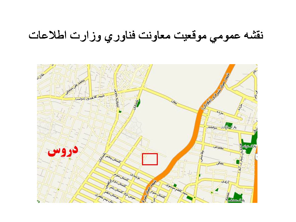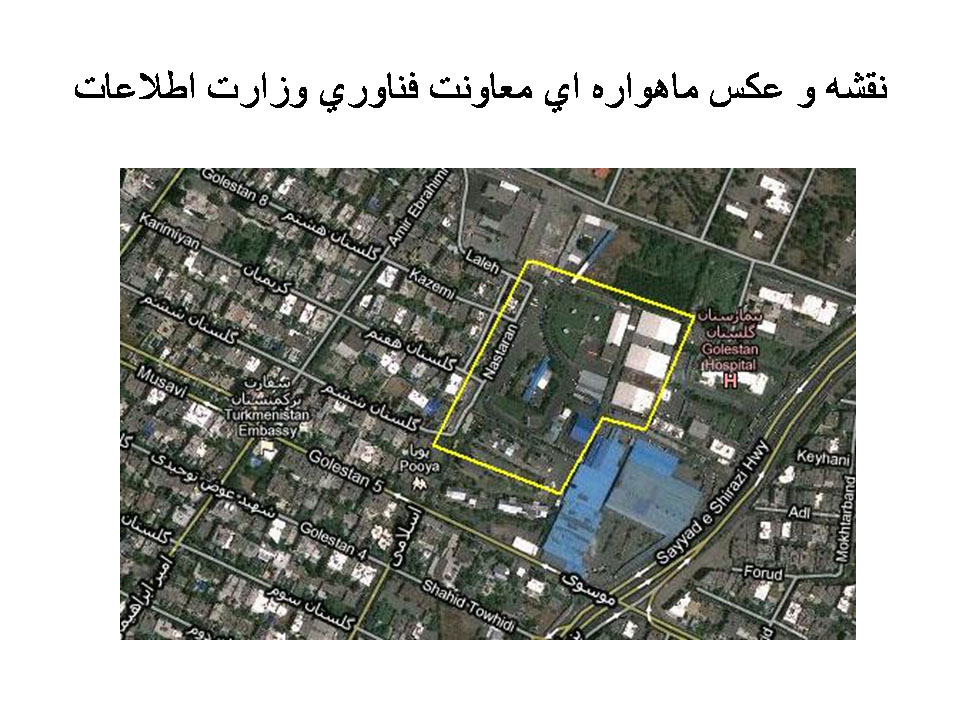 محل معاونت فنی وزارت اطلاعات واقع در یک مجتمع نظامی در انتهای خیابان گلستان واقع در خیابان پاسداران است, اما هیچگونه اسم و تابلویی ندارد. هرگونه مراجعه به این مرکز از طرف سایر ارگانها ممنوع است.