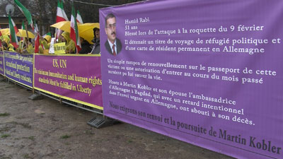 یاران مقاومت تحصن و تظاهرات خود را از 8 صبح تا 6 بعد از ظهر در مقابل مقر سازمان ملل در میدان ملتها برگزار کردند.
