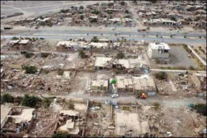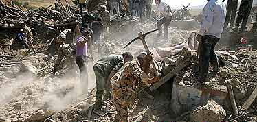 نیمی از شهر شنبه، که یکی از شهرهای زلزله زده است، تخریب شده.