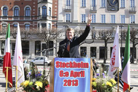 متشکرم دوستان من ـ هر کجا که میروم ایرانیانی وجود دارند، در هرنقطه از جهان، و من می خواهم از دوستانم در سوئد برای خوشامد گویی به من تشکر کنم، میگویند که انتخاباتی در ایران در پیش خواهد بود، اما ما میدانیم که انتخابی حقیقی برای مردم ایران وجود ندارد، این انتخابات برای یک تغییر واقعی که ایران نیاز دارد نیست، چرا که ایران به احمدی نژاد و ملاها نیاز ندارد، ایران به آزادی نیاز دارد. ما مردمانی آزاد هستیم و تمامی مردم آزاده، آزادی در ایران برایشان مهم است، چرا که این فقط در مورد آزادی ایران نیست، بلکه در مورد آزادی انسانی است.