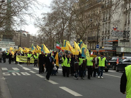 در روز شنبه، 24فروردین (13 آوریل) نزدیک به دو هزار تن از ایرانیان و شهروندان فرانسوی در یک تظاهرات در پاریس در مورد حمله احتمالی بعدی و قتل عام چهارم مجاهدین در کمپهای لیبرتی و اشرف در عراق هشدار دادند. آنها به اقدام عاجل سازمان ملل، آمریکا و فرانسه برای تضمین حفاظت پناهندگان بیدفاع ایرانی فراخوان دادند.
