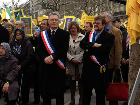 علاوه بر دکتر صالح رجوی نماینده شورای ملی مقاومت ایران در فرانسه، شخصیتهای فرانسوی و بین المللی از جمله سید احمد غزالی، نخست وزیر سابق الجزایر، ایو بونه، رئیس سابق سازمان ضد اطلاعات فرانسه، و اسقف گایو، پیر برسی، رئیس انجمن حقوق بشر نوین، در این تظاهرات سخنرانی کرده و از خواستهای تظاهرکنندگان حمایت کردند.