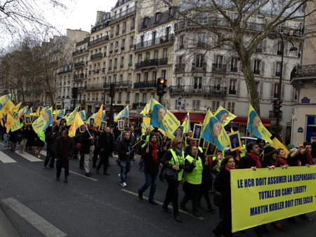 تظاهرات در پاریس بخشی از یک کمپین بین المللی در اروپا و آمریکا برای تضمین حفاظت پناهندگان ایرانی در عراق است. تظاهرات مشابهی در برلین، استکهلم، تورنتو و لاهه برگزار شده اند.