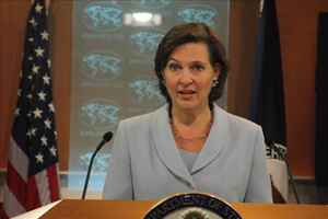 ویکتوریا نولند سخنگوی و زارت خارجه آمریکا در کنفرانس خبری خود، پاسخ به سئوالات خبرنگاران راجع به مذاکرت هیلاری کلینتون وزیرخارجه آمریکا با وزیرخارجه عراق پیرامون اشرف گفت :