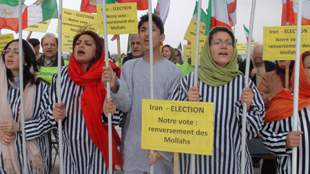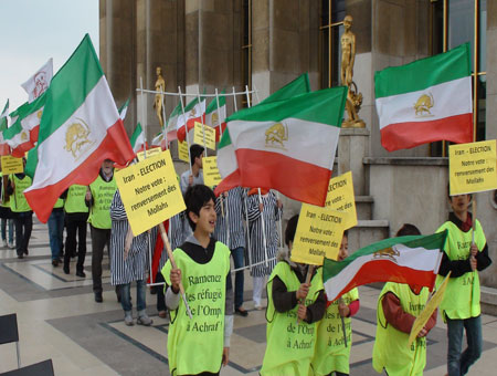این آکسیون در اعتراض به نقض فاحش حقوق بشر، دستگیری و اعدام های روزانه در ایران تحت حاکمیت آخوندهای ضد بشر و محکوم کردن نمایش انتخاباتی ملاها و درحمایت از مجاهدان اشرف و لیبرتی بر گزارشد.
