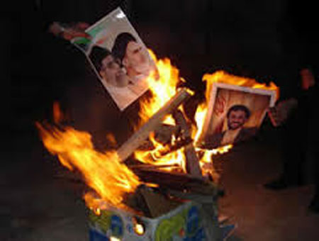 به آتش کشیدن تصاویر خامنه ای و احمدی نژاد در تظاهرات جمعه عراق