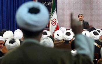پاسدار احمدی نژاد خطاب به آخوند ها و مراجع حکومتی گفت: ”نمی توانی تا خرخره بخوری و ادعای اجتهاد داشته باشی“.