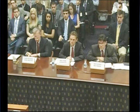 در این جلسه استماع جان بولتون، سفیر پیشین آمریکا در ملل متحد و مارک دو بوویتس مدیر اجرایی بنیاد دفاع از دموکراسیها و کارشناس امور خاورمیانه شرکت داشتند. طی این جلسه بحران سوریه و مداخلات فزاینده رژیم آخوندی در کمک به هم پیمان خود بشار اسد، پرونده اتمی دیکتاتوری آخوندی و تحریمها و راه کارهای برخورد با بن بست اتمی، به ویژه با روی کار آمدن آخوند روحانی و همچنین افسانه وجود «میانه رو» در درون این رژیم مورد بحث و بررسی میان قانونگذاران و شهود قرار گرفت.