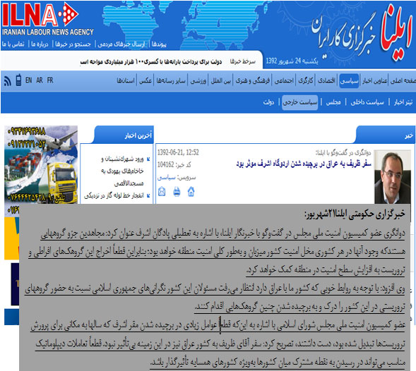 اذعان رسمی حکومت آخوندی به اجرای دستور جنایت علیه بشریت توسط دولت مالکی تحت عنوان:«حمله اخیر دولت عراق به پادگان اشرف»