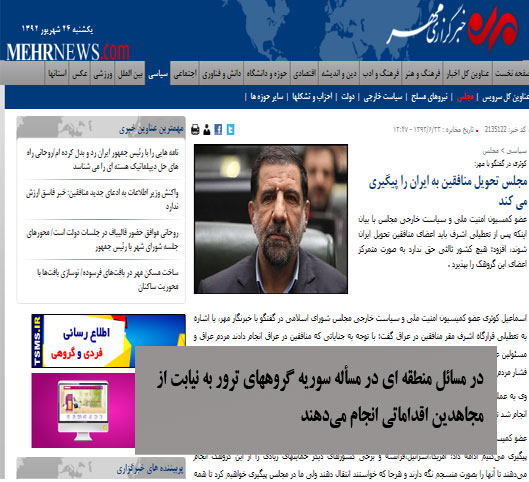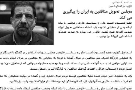 عضو کمیسیون امنیت ملی در گفتگو با مهر: مجلس تحویل مجاهدین به ایران را پیگیری می کند