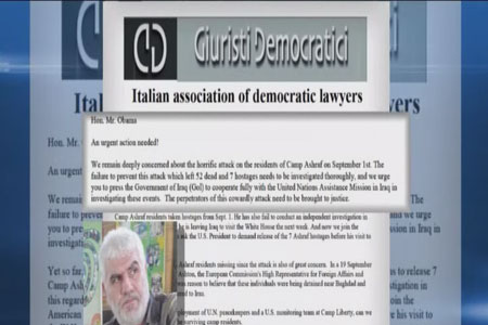 انجمن بین المللی همکاری برای فرهنگ حقوق بشر ایتالیا دارای رتبه مشورتی سازمان ملل؛ طی نامه ای به رئیس جمهور آمریکا، خواستار آزادی 7 گروگان اشرفی قبل از دیدار وی با نوری مالکی درکاخ سفید شد.
