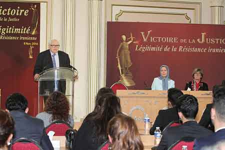 عامل سوم مبارزه وکلا بود و از این رو می خواهم درود بفرستم به وکیل هانری کلرک که به سرعت این پرونده را به دست گرفتند و محصول این سه عنصر بود که به ما اجازه داد به این نتیجه برسیم اما یازده سال طول کشید و این زیاد است. این مبارزه به مبارزات دیگر نیز پیوند دارد مبارزه علیه سلاح هسته ای در دست یک حکومت ناصالح، مبارزه برای حقوق بشر، دموکراسی که همه ما احساس می کنیم در آن سهیم هستیم، من به عنوان شهردار و منتخب جمهوری، تردیدی به خود راه نمی دهم وقتی دموکراسی زیر علامت سؤال می رود، باور من بر این است که برهر دموکرات و جمهوری خواه است که برخیزد و ابراز انزجار کند. بعضیها به من انتقاد کردند که تو زیادی بیش از حد خود انگیخته واکنش نشان دادی، ولی من فکر می کنم یک سری ارزشهای پایه ای در جمهوری است که خیلی نیاز به فکر کردن در باره آن وجود ندارد، تا برخیزیم، و من با قلبم و ارزشهایم صدایم را بلند کردم و خیلی های دیگر هم همین کار کردند. اگر چه یازده سال گذشت و موانع زیادی بر سر راهشان ایجاد کردند ولی جنبش شما به پیش می رود و در عین حال بنیاد گراها اجازه یافتند در این مدت رشد پیدا کنند. در منطقه این تبدیل به یک بلایا شده آنچه که داعش می نامند هیچ ربطی به مذهب ندارد. و آنها بنیاد گرا هستند، مبارزاتی که در عراق، سوریه، لیبی و جاهای دیگر ادامه دارد ما در این مبارزات خود را سهیم می دانیم و باید هر یک با این مبارزات همبستگی نشان دهیم. مبارزه برای حقوق بشر، برای کرامت انسانی، برای دموکراسی، این ارزشها را مقاومت شما حمل می کند. من با کلمات قاضی ترویدیک کاملاً موافقم که در دادگاه. گفت، مقاومت شما را نمی توان به تروریزم نسبت داد. ما نیز در جنگ جهانی دوم در مقاومت فرانسه، گروههایی مثل. اف.ت.پ و اف.اف.ای را داشتیم که آنها را نیز به تروریزم متهم می کردند، دانیل میتران به درستی می گفت که او هم متهم به تروریزم بود. و ما اینجا شخصیتهای بزرگ مقاومت فرانسه را داشتیم که اینجا دراور سور اوآز به دیدار شما آمدند. آنها ارزشهای بالای حقوق بشر را در سطح خود حامل بودند، ما با شما هستیم در مبارزاتی که برای آزادی مردم ایران به پیش می برید که بسیار از این ستم رنج می برند. من بسیار خوشحالم که می بینم جوانان زیادی در این جلسه هستند و این مبارزه را دنبال می کنند. جوانان آینده این مبارزات هستند، من می خواهم به آنها درود بفرستم و تشویقشان کنم که پرچم دموکراسی، آزادی، وحقوق بشر را بالا نگهدارند مبارزات شما پیروز خواهید شد، درود بر مقاومت ایران،