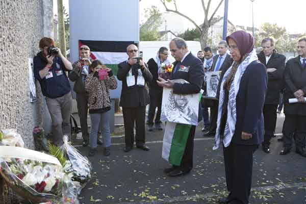 روز چهارشنبه 12نوامبر(21آبان93) یک هیت از سوی مقاومت ایران به سرپرستی دکتر معصومه بلورچی درمراسم بزرگداشت سالگرد فقدان یاسر عرفات رهبر تاریخی مردم و انقلاب فلسطین در پاریس، درمقابل ورودی ساختمان بیمارستانی که یاسرعرفات در آن درگذشت شرکت کرد.