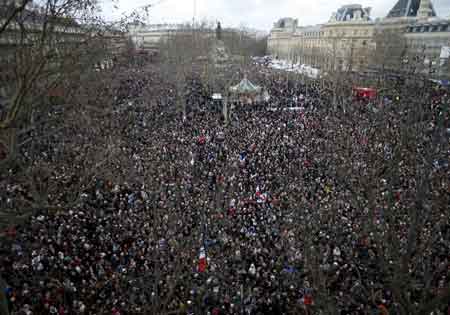 تظاهرات تاریخی روز یکشنبه در پاریس علیه تروریسم و فاشیسم دینی و سوءاستفاده از نام اسلام که با حضور میلیونی مردم فرانسه از تمامی جوامع و گرایشها و مذهبها و رهبران کشورها از سراسر ارو پا و جهان برگزار شد، بزرگترین رژه و تظاهرات وحدت ملی در تاریخ فرانسه و بزرگترین نمایش همبستگی بینالمللی علیه تروریسم و ارتجاع و بنیادگرایی توصیف شد.