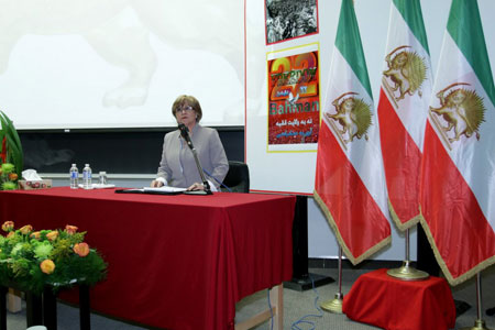 خانم مهین مشکین فام عضو شورای ملی مقاومت ایران و پهلوان مسلم اسکندرفیلابی مسئول کمیسیون ورزش شورای ملی مقاومت سخنرانان این مراسم بودند.