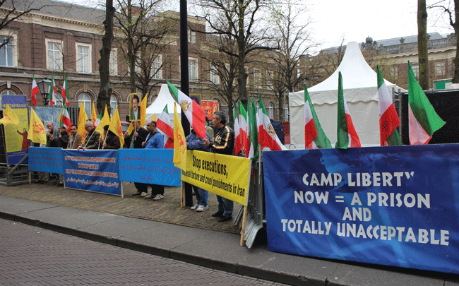 ایرانیان آزاده در لاهه روز شنبه ۵ اردیبهشت در محکومیت محاصره ضدانسانی پزشکی علیه مجاهدان آزادی در لیبرتی تظاهراتی در مقابل پارلمان هلند برگزار کردند.