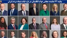 بیانیه حمایت قاطع ۷۱نماینده مجلس عوام انگلستان از قیام دیماه مردم ایران