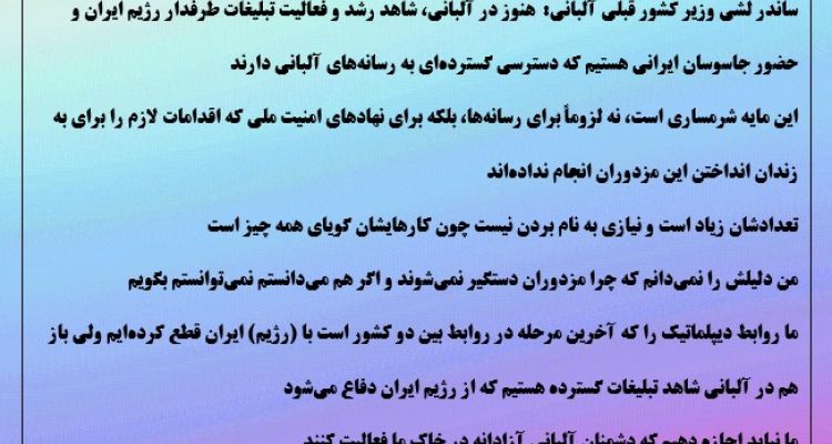 وزیر کشور قبلی آلبانی: هنوز در آلبانی، شاهد حضور جاسوسان ایرانی هستیم که دسترسی گستردهای به رسانههای آلبانی دارند