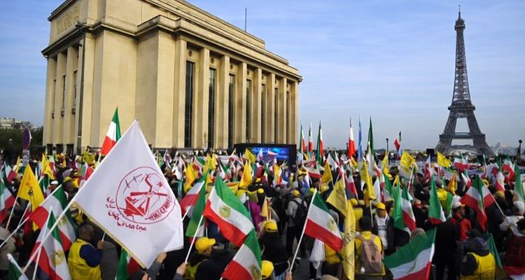 نه شاه ، نه شیخ نه سلطنت، نه رهبری تظاهرات در پاریس در حمایت از شجاعت و قیام مردم ایران